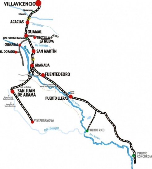 Nace en Villavicencio y se traslada hacia la ciudad turística del Meta, Acacias. Continua hacia Guamal, San Martín, Granada, Fuente de Oro y San Juan de Arama. Atractivos: Malecón del rió Acacias, Rio Humadea, Mirador turístico de San Martín, Cuadrillas de San Martín, Puente Guillermo León Valencia, Rio Ariari, el Indio Acostado y diferentes actividades de aventura y deportes extremos.
